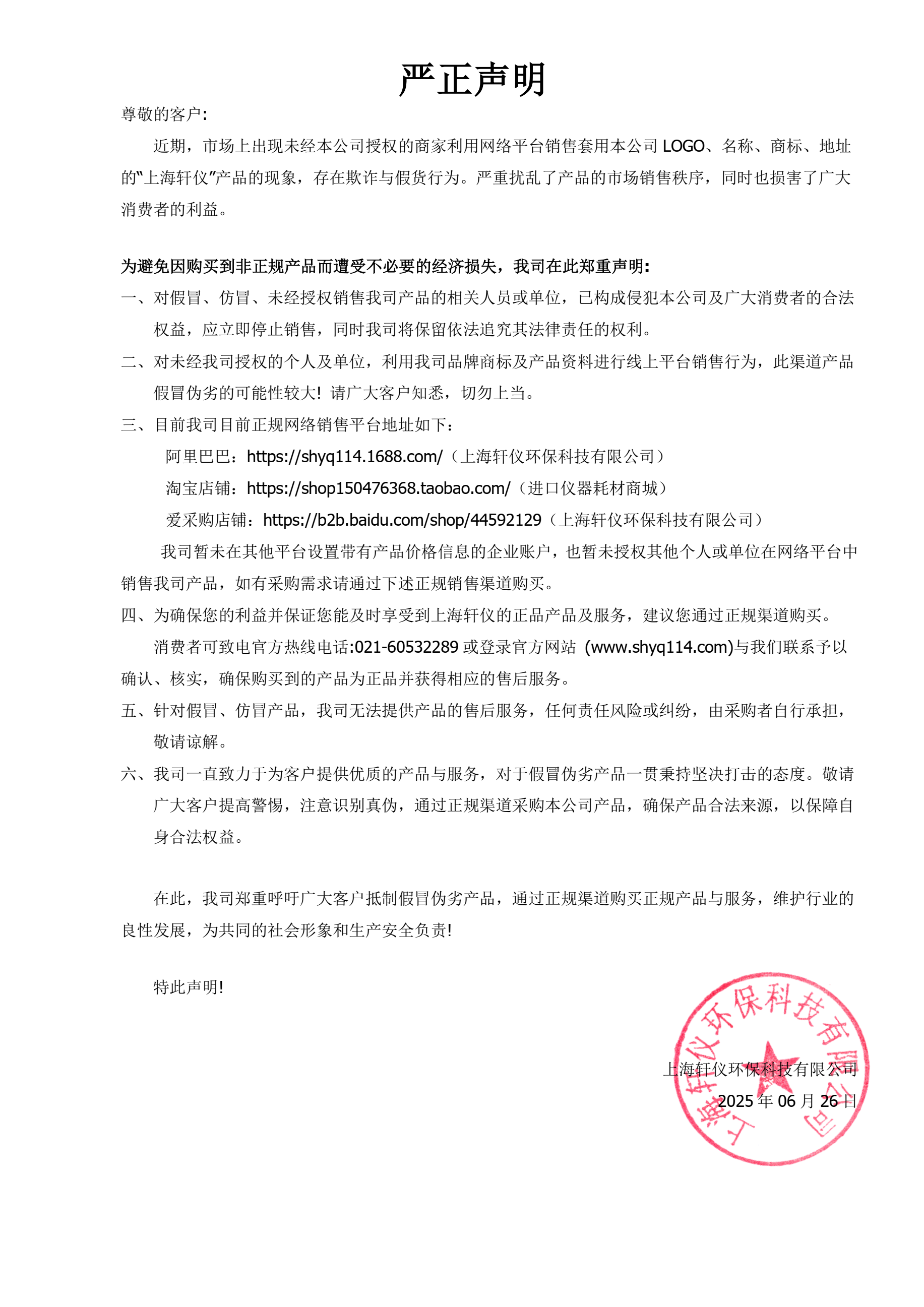 為避免因購買到非正規(guī)產(chǎn)品而遭受不必要的經(jīng)濟損失,我司在此鄭重聲明: